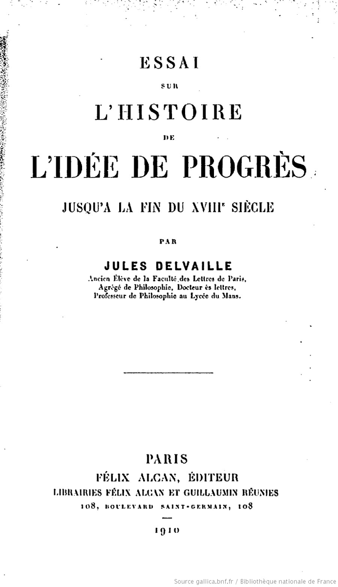 Selon Jules Delvaille (1910), la croyance au progrès est en germe dès l’Antiquité. Certes, dans les sociétés grecque et romaine, la conception dominante du temps est cyclique, ce qui empêche de penser un progrès durable. 3/25 nonfiction.fr/article-6335-h…