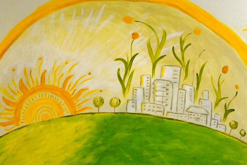 Ще одна складність була наприкінці роботи, бо треба було не лише швидко закінчити, а й придумувати композиції на ходу. Останній день я малював цілу ніч, зайшов в тупик з одним малюнком, поїв всі горіхи і лише з перших сходом сонця придумав картинку зі світанком над містом.