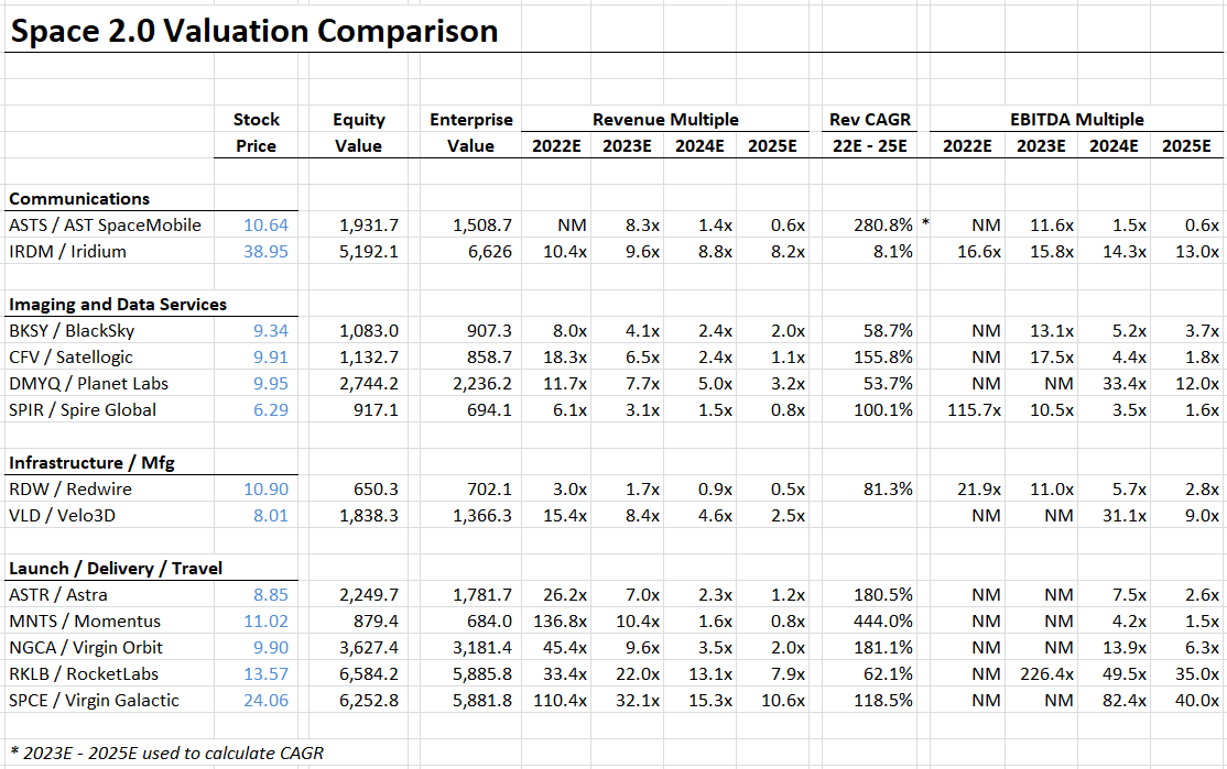 The spreadsheet below (cc: @spacanpanman) shows a valuation breakdown of the space sector.
