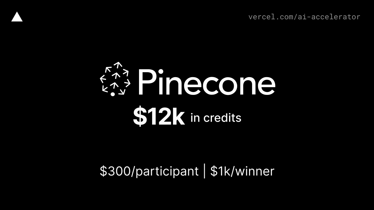 Get @pinecone credits to use their vector database as part of Vercel's AI Accelerator.