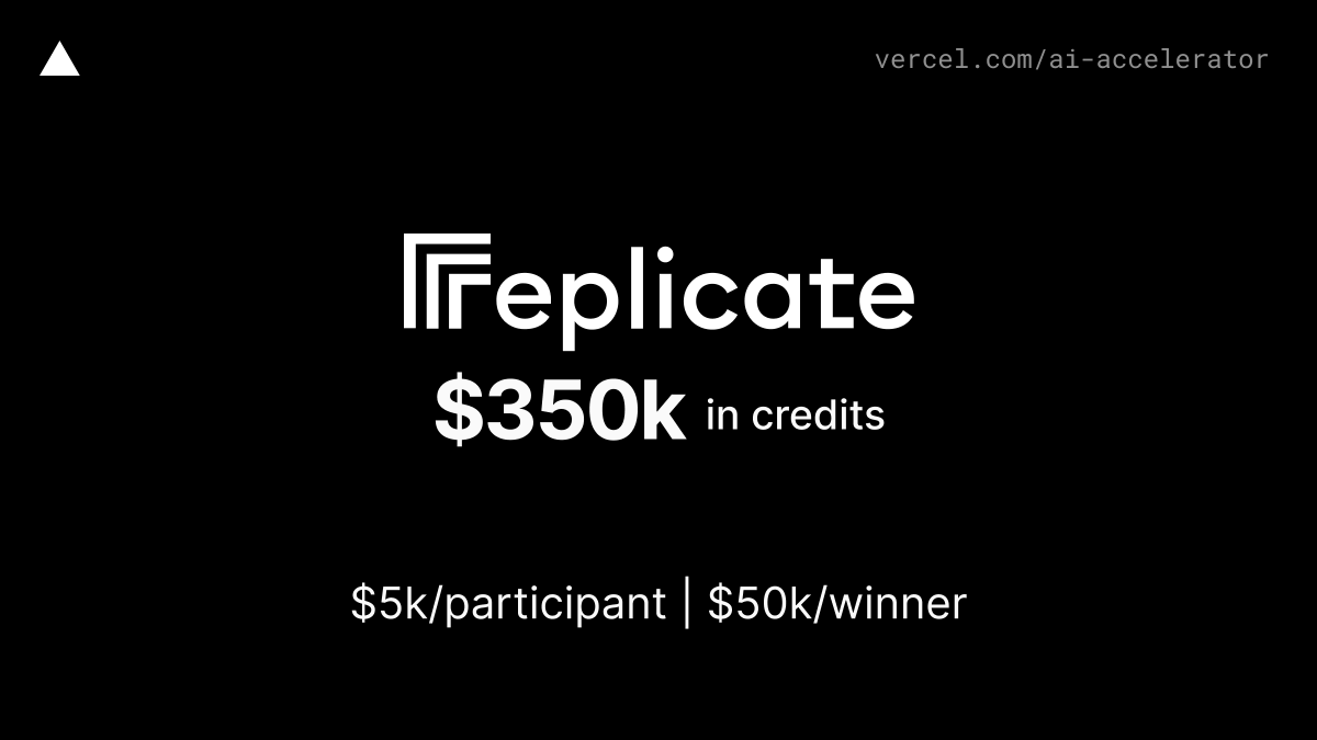 Get @replicatehq credits to run hundreds of open-source AI models in the cloud or push and run your own private models as part of Vercel's AI Accelerator.