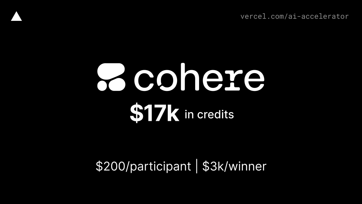 Get @CohereAI credits to use their LLMs and NLP tools as part of Vercel's AI Accelerator.