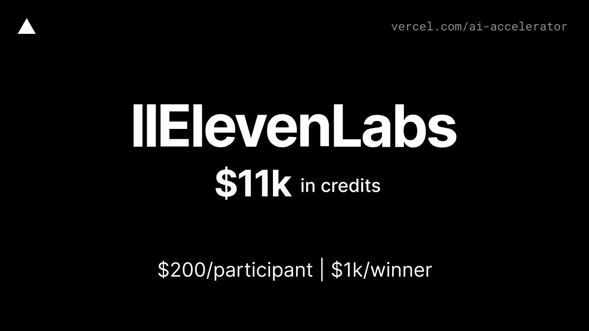 Get @elevenlabsio credits to use their text to speech and voice creation APIs as part of Vercel's AI Accelerator.