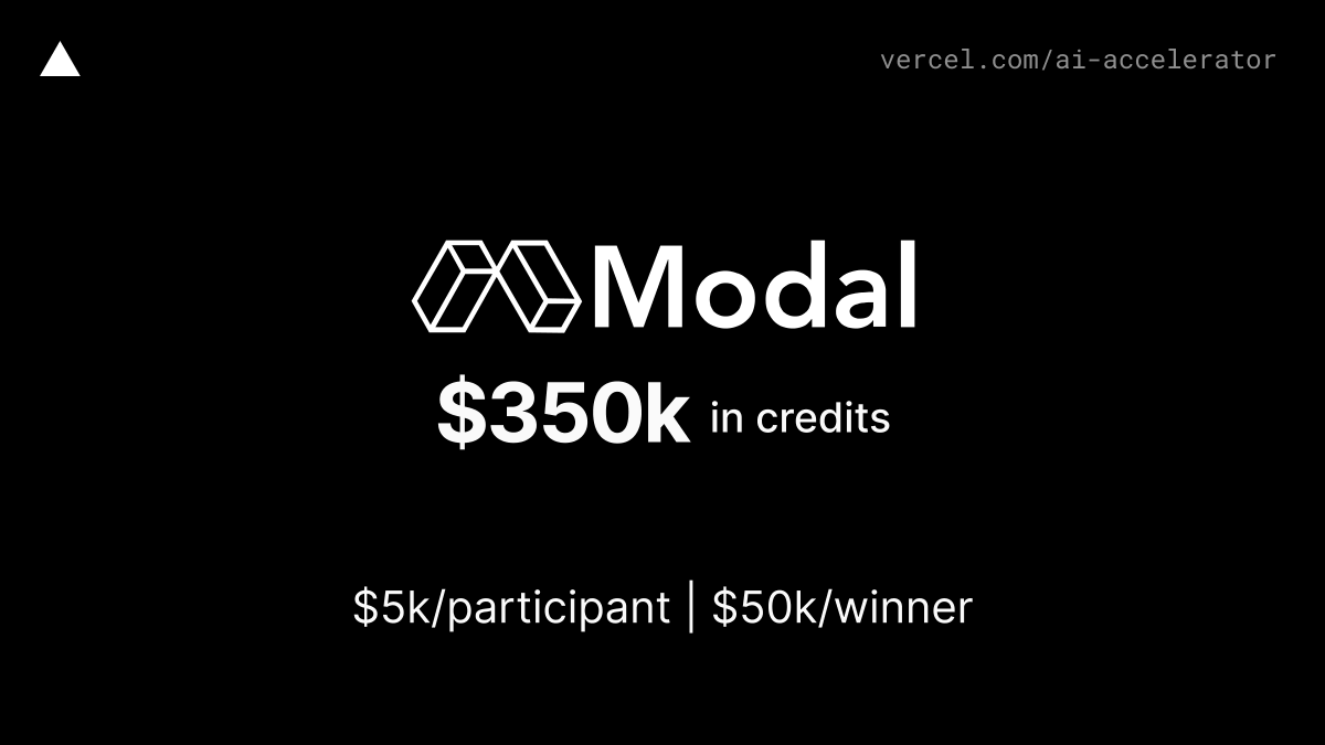 Get @modal_labs credits to deploy your models, run fine-tuning jobs, or host embedding pipelines as part of Vercel's AI Accelerator.