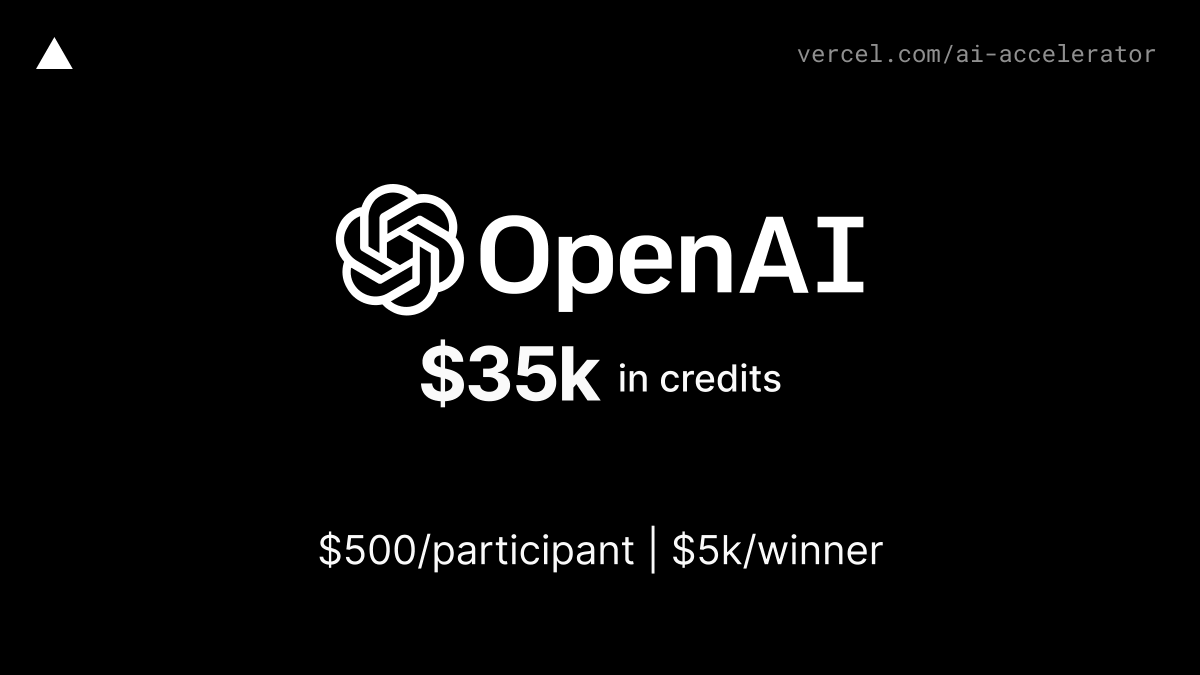 Get @OpenAI credits to use any of their APIs including GPT-4 and DALL-E-2 as part of Vercel's AI Accelerator.
