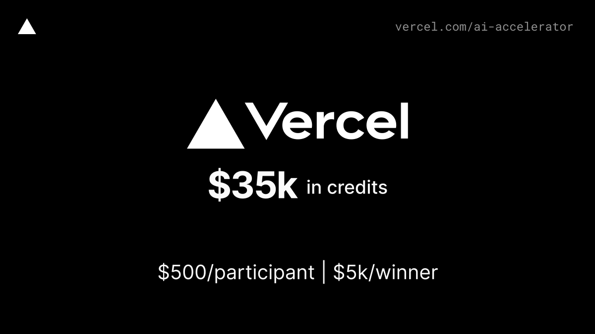 Finally, get access to @vercel credits to use for hosting, compute, analytics, or storage as part of Vercel's AI Accelerator.