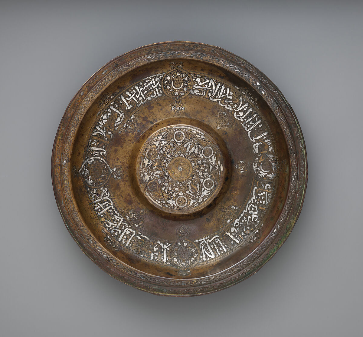 An object almost certainly made by Islamic artisans for Christian patrons is this brass pilgrim flask, probably made in Syria in the 13th century.