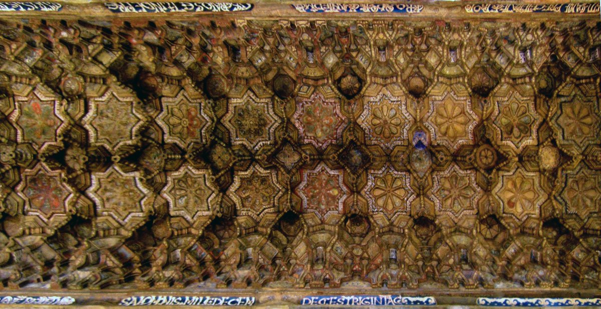 A good example is the ceiling of the Royal Convent of Santa Clara in Tordesillas, built during the 14th century, with its interlocking, geometric design.