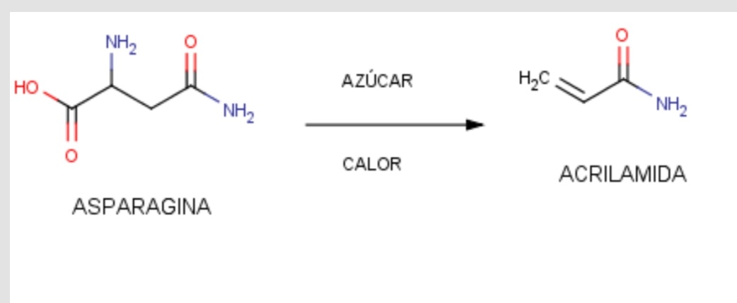 Pero al freírse, algunos azúcares de la patata y la asparagina (un aminoácido) llevan a cabo la reacción de Maillard y se produce acrilamida