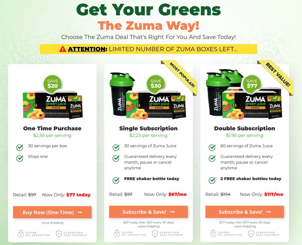 When your #1 competitor is Athletic Greens, known for its super premium price, this does help position Zuma Juice as more affordable.
