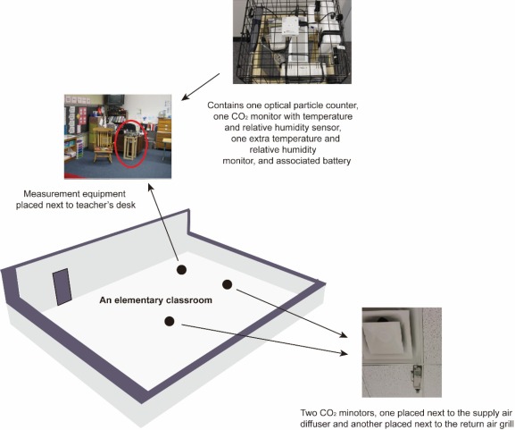 Study monitored indoor data in 144 classrooms in 31 schools in the Midwestern for 2 consecutive days every fall, winter, and spring during 2 years; 3,105 pupils attended classrooms where measurements were conducted.