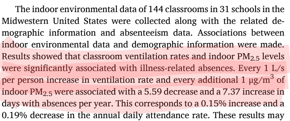GOOD VENTILATION in SCHOOLS = LESS ILLNESS related ABSENCES !