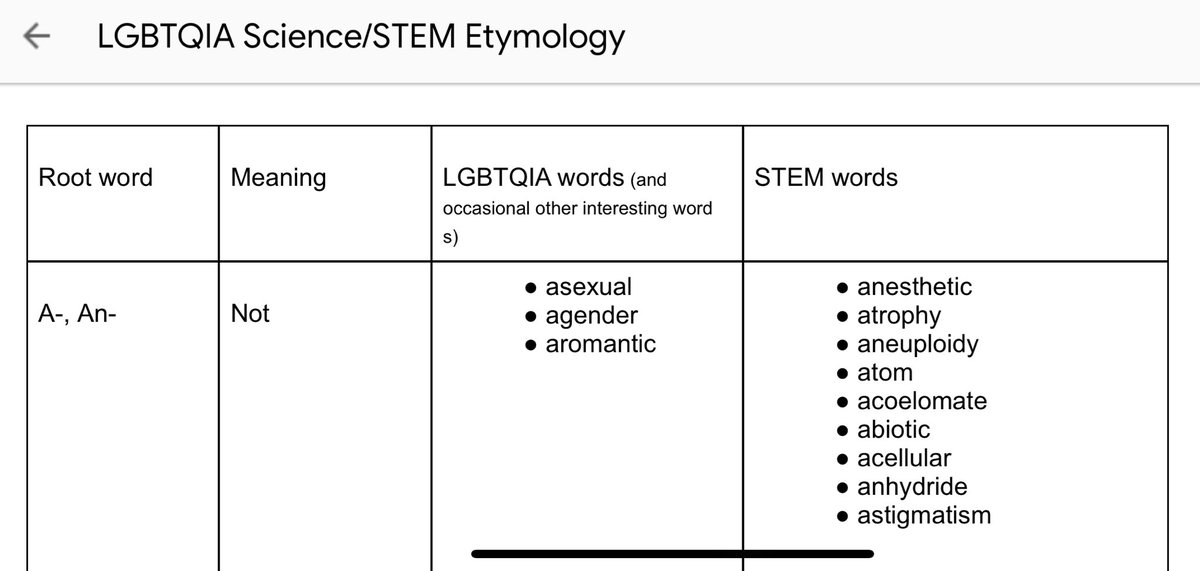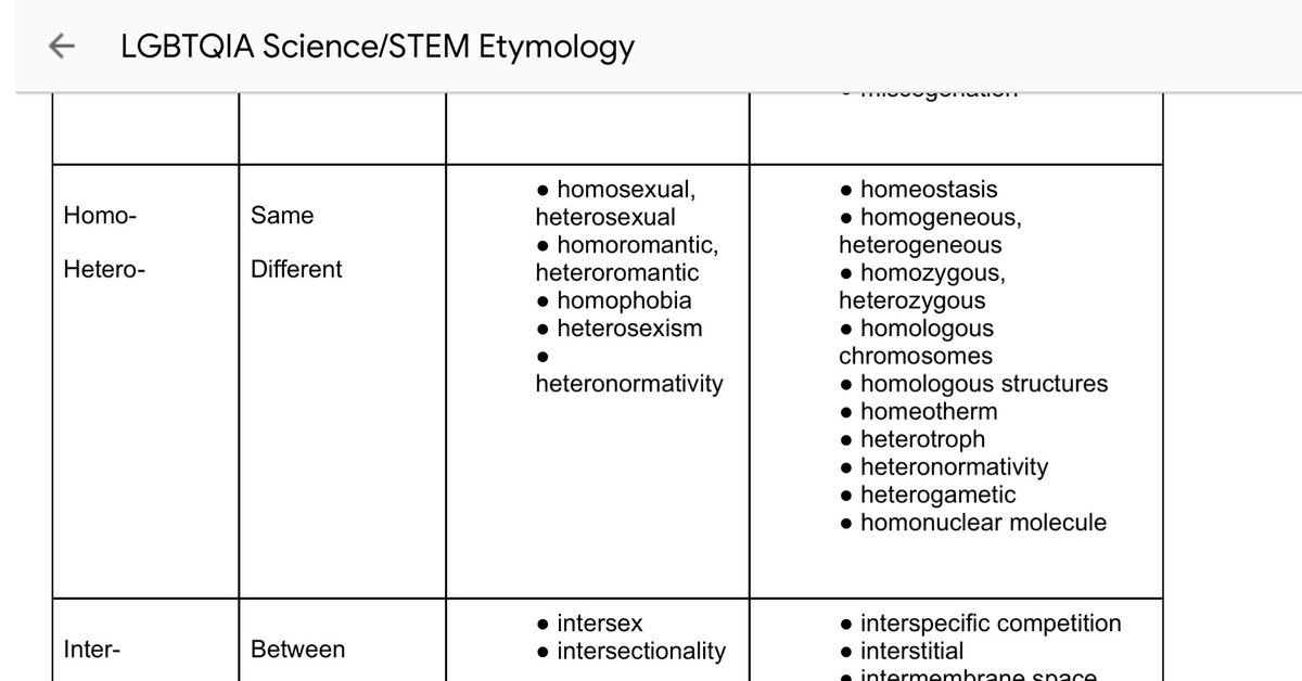 A trans high school teacher shared a contrived and blatantly propogandic lesson plan to show teachers how they can integrate LGBTQIA vocabulary into their science lessons.