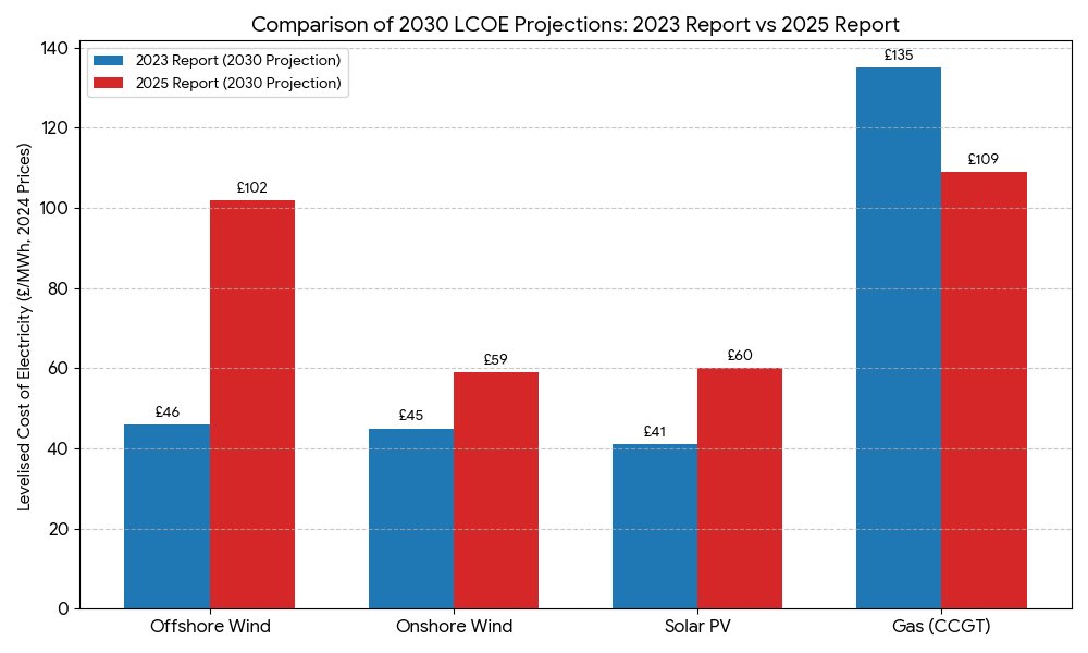 While Ed announced the ridiculous prices for AR7 offshore wind this morning DESNZ has snuck out a new Electricity Generation Costs report that is vastly different to the 2023 report widely used to sell renewables as the way forward.