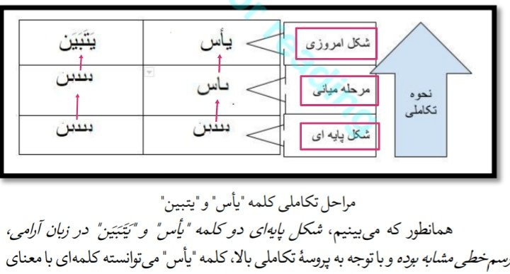 محققین متوجه شدند که ریشه و شکل پایه ای آرامی کلمه« يَيْأَسِ » همونطور که در شکل میبینید با واژه دیگه ای بنام «یَتَبَیَّنَ» یکی هست و با توجه به پروسه تکاملی که نشون دادم