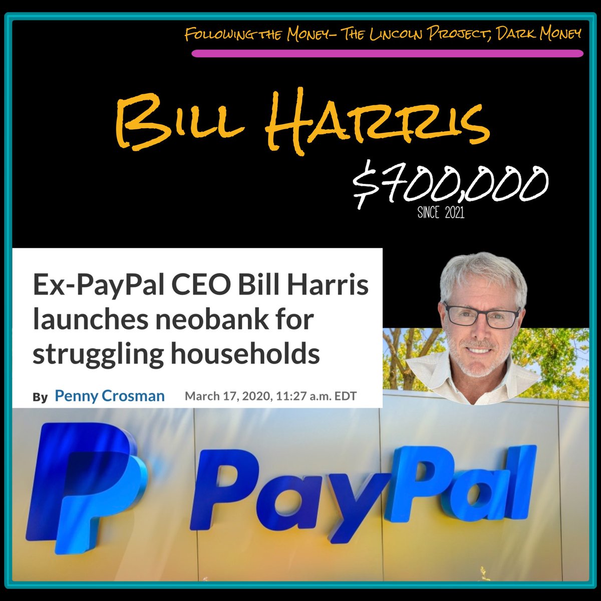 5/ Bill Harris, former CEO of PayPay and current owner of a new digital banking company out of Miami, Nirvana, has donated $700,000 to The Lincoln Project since 2021.