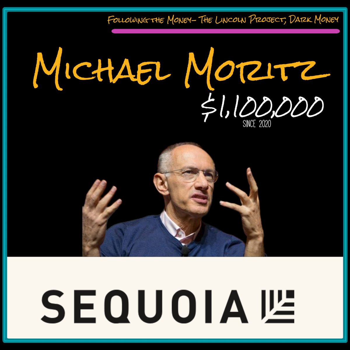 8/ Michael Moritz, a partner at Sequoia Capital, donated a whopping $1,100,000 to this Trump-hating propaganda campaign, The Lincoln Project.