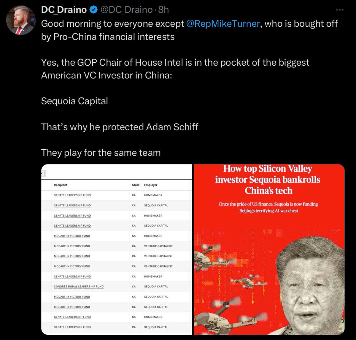 Yes, the GOP Chair of House Intel is in the pocket of the biggest American VC Investor in China: