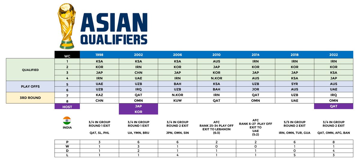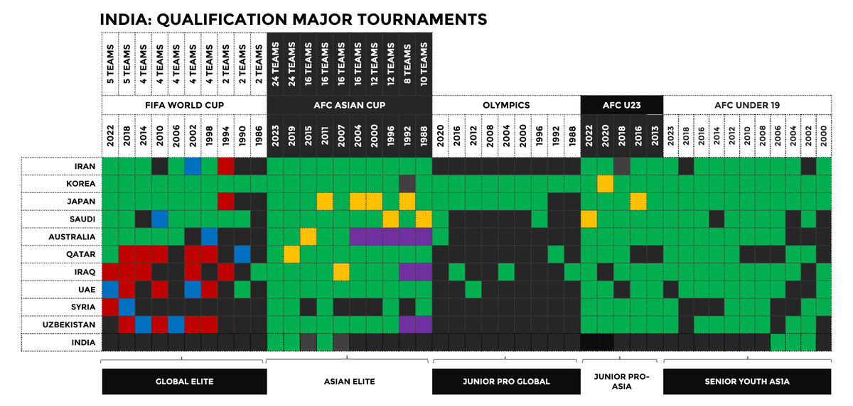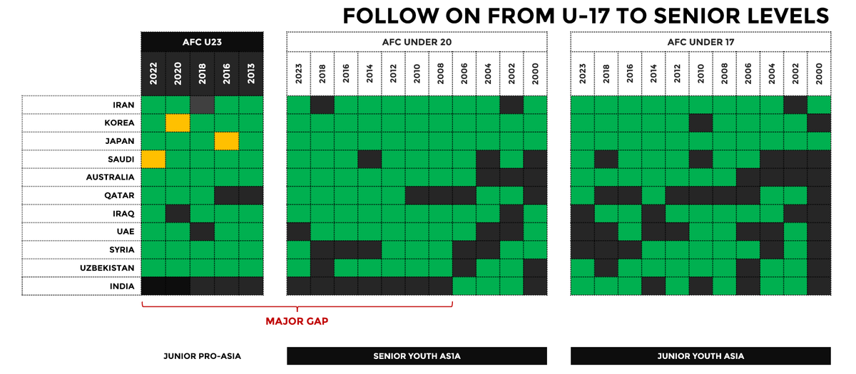 Easy to spot the role of a strong track record in AFC U20, 23 competitions leading to senior team success in who have finished as top 8 teams (@FIFAWorldCup 2026) in Asian WC qualifiers over the years