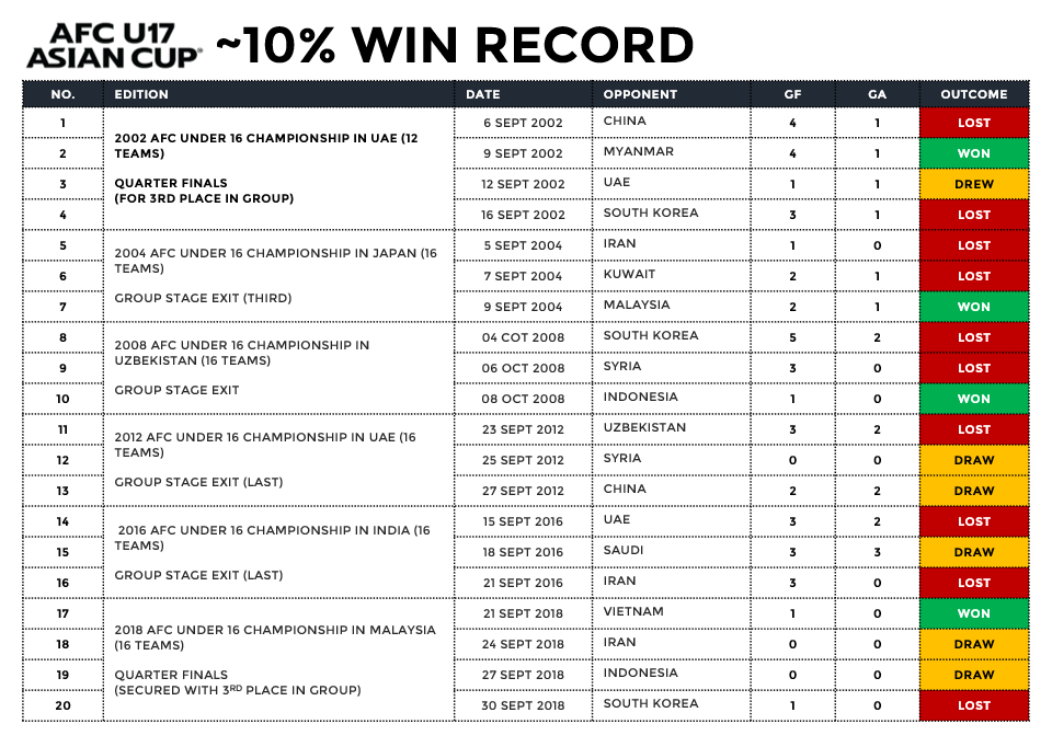 Despite the win record at the tournament, we would feature regularly at AFC U19/20 till about 2006 (where we were hosts)