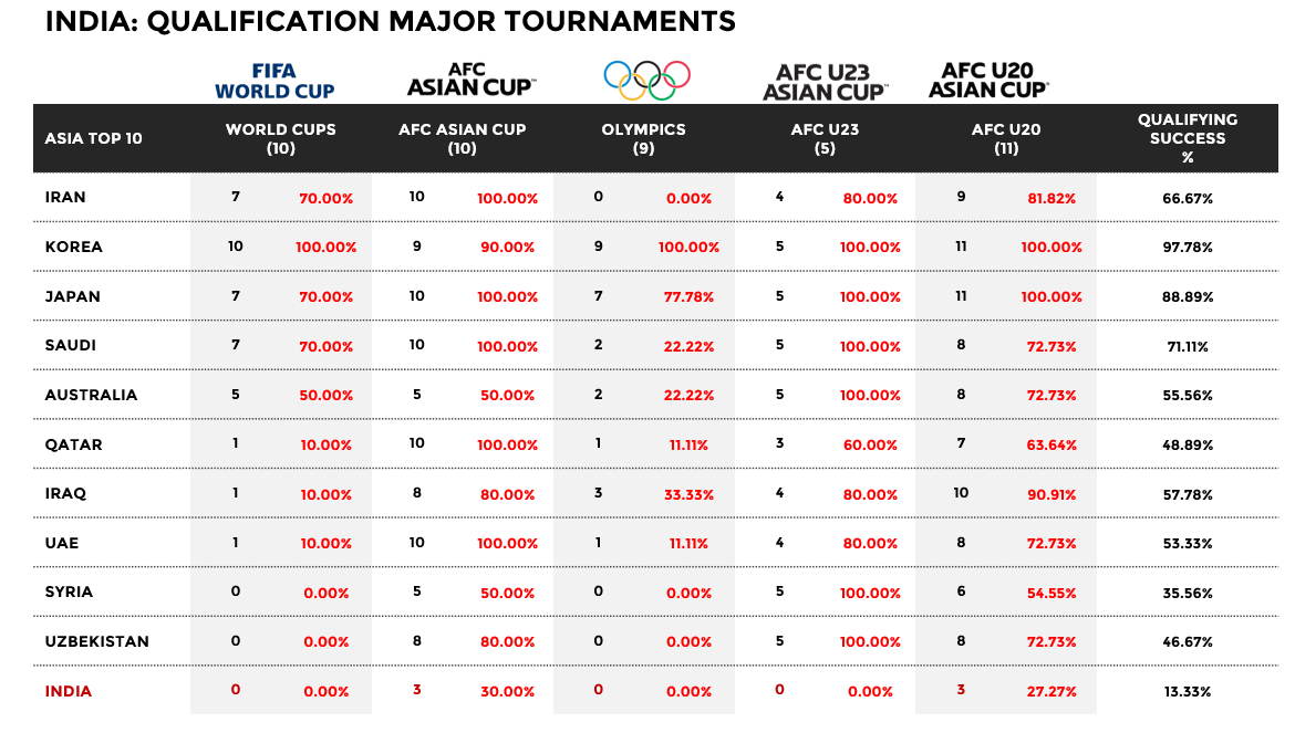 Clear how this looks for the Top 10 nations especially in the AFC U20 and 23.