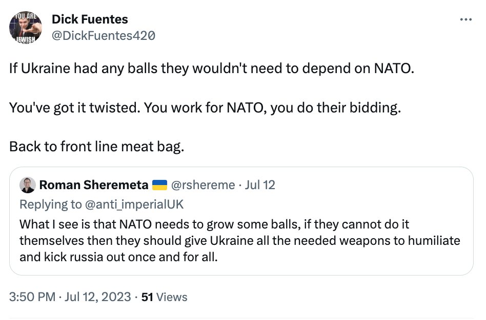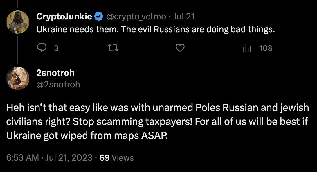 All the self-identifying Nazis I can find support Russia. hxxps://twitter.com/SoleszHU/status/1667916129732288513 Image