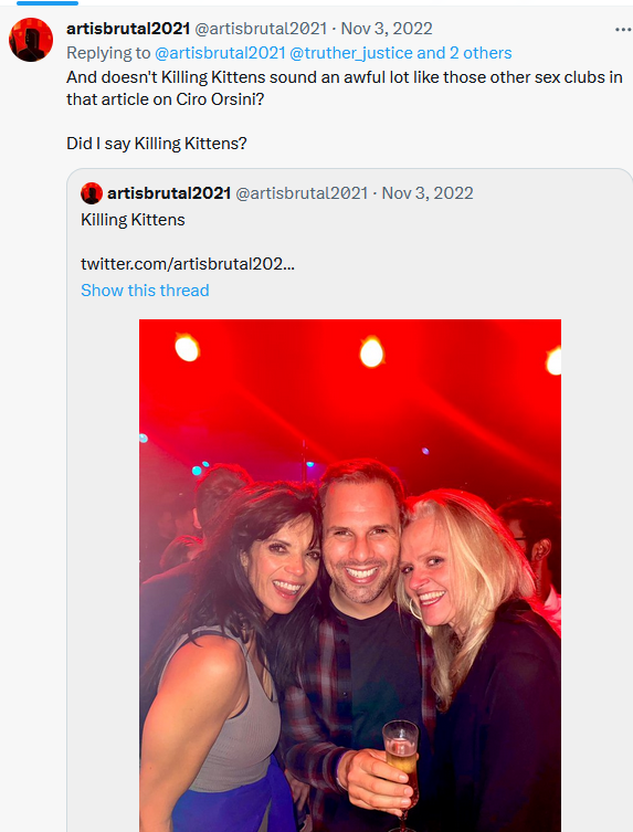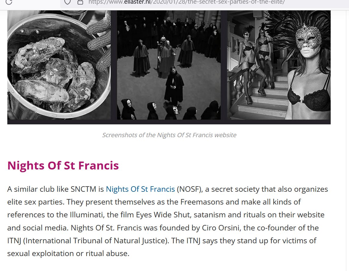"A similar club like SNCTM is Nights Of St Francis (NOSF), a secret society that also organizes elite sex parties...founded by Ciro Orsini , the co-founder of the ITNJ (International Tribunal of Natural Justice)"