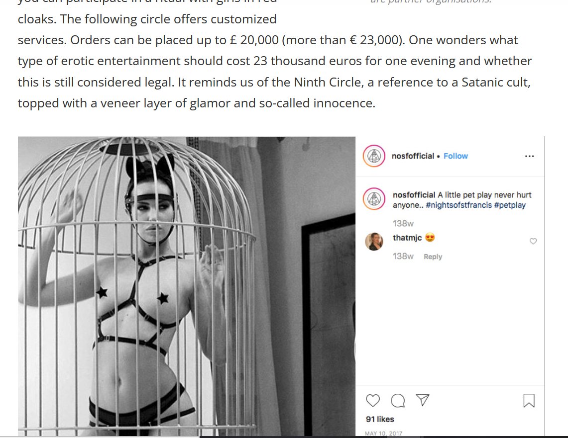 "In the Netherlands, elite sex parties are also used as a means of pressure and blackmail to secure certain deals. Here, ‘Ndrangheta — originally an Italian Mafia group that operates worldwide — delivers the victims for pedo parties and Ninth Circle rituals."..