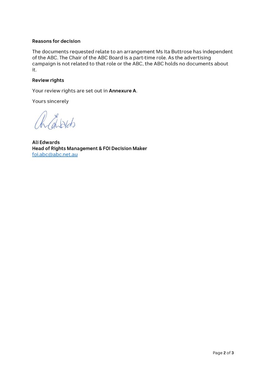 The @ABCaustralia just threw the Chair of the Board under the bus with this FOI refusal.