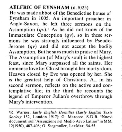 The eucharistic doctrine of Aelfric, a 10th c. Abbot of Eynsham, was widely seen as the post-Reformation doctrine of the Church of England.