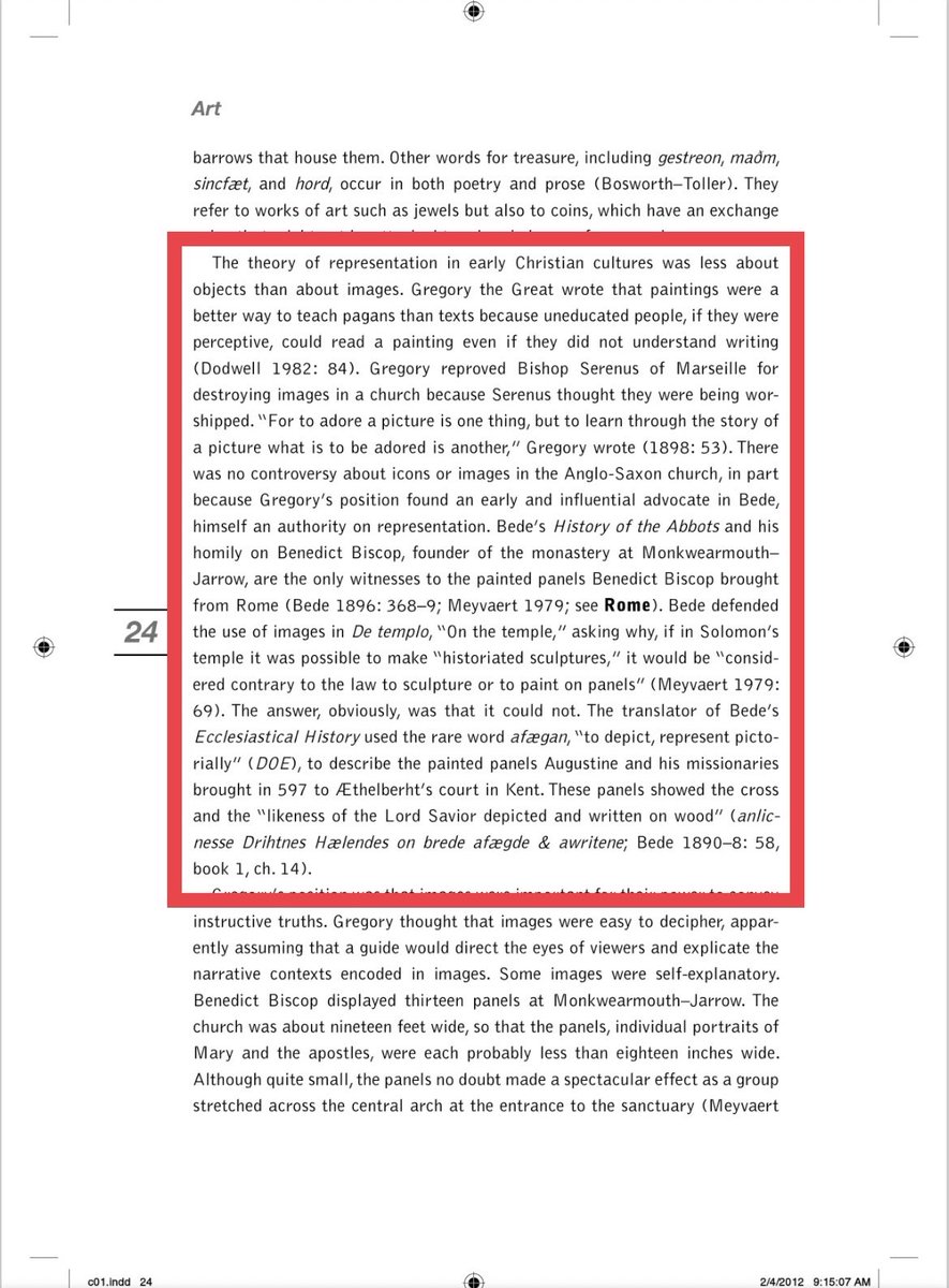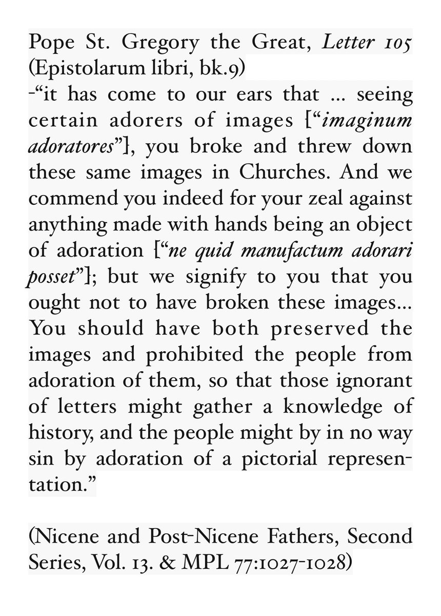 Folks like Venerable Bede, on icons, followed the position of St. Gregory the Great. (Attached for reference.) Icons may be used for education, but not for worship.