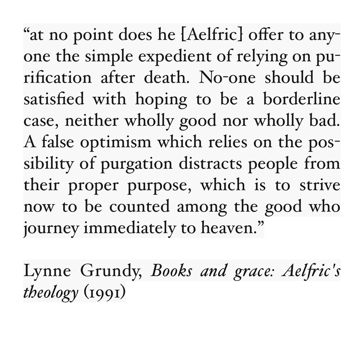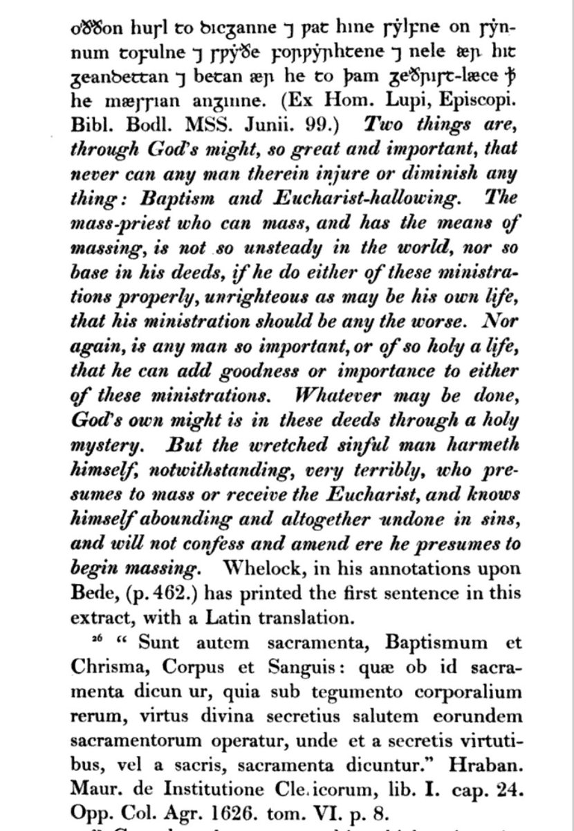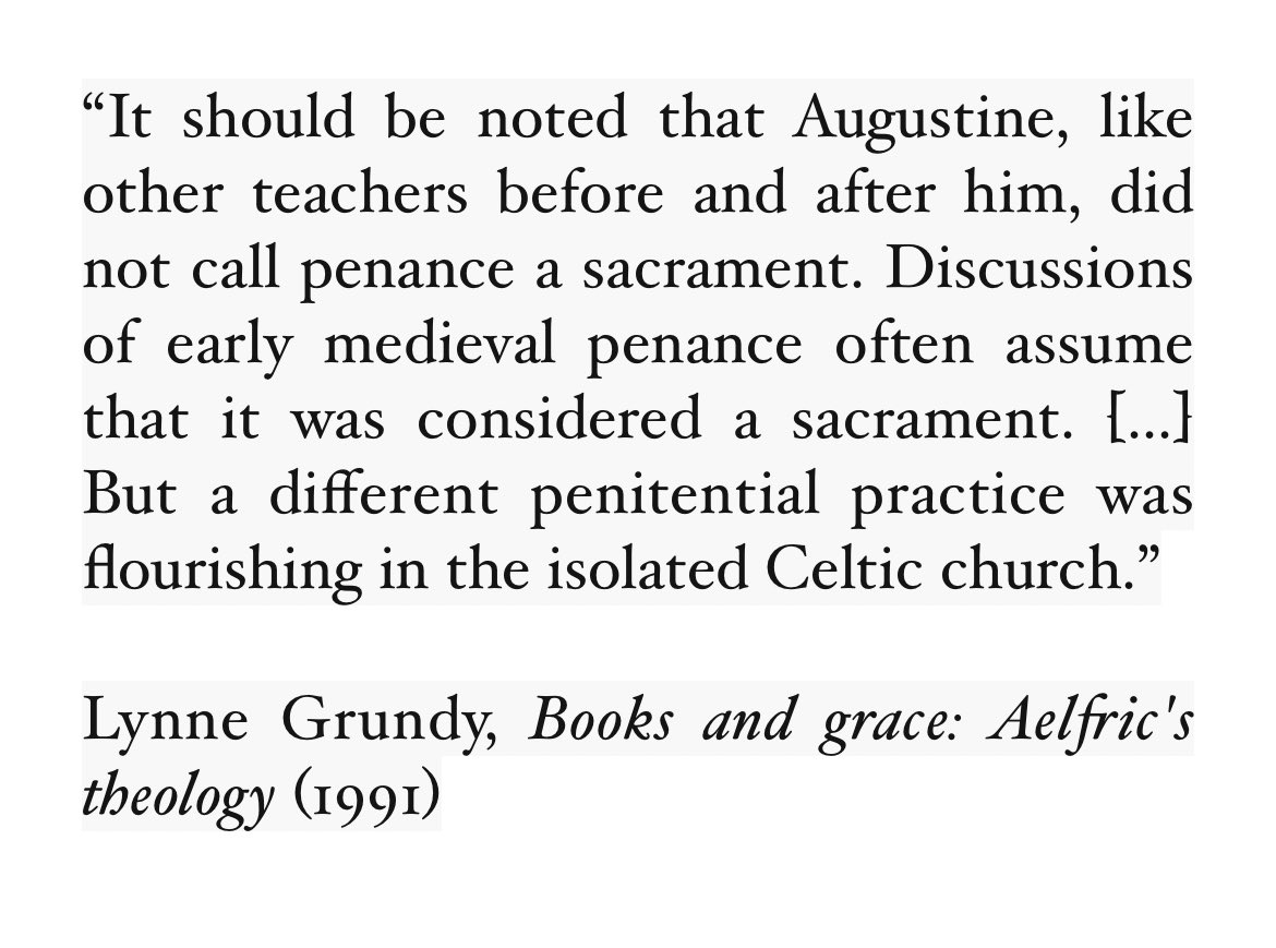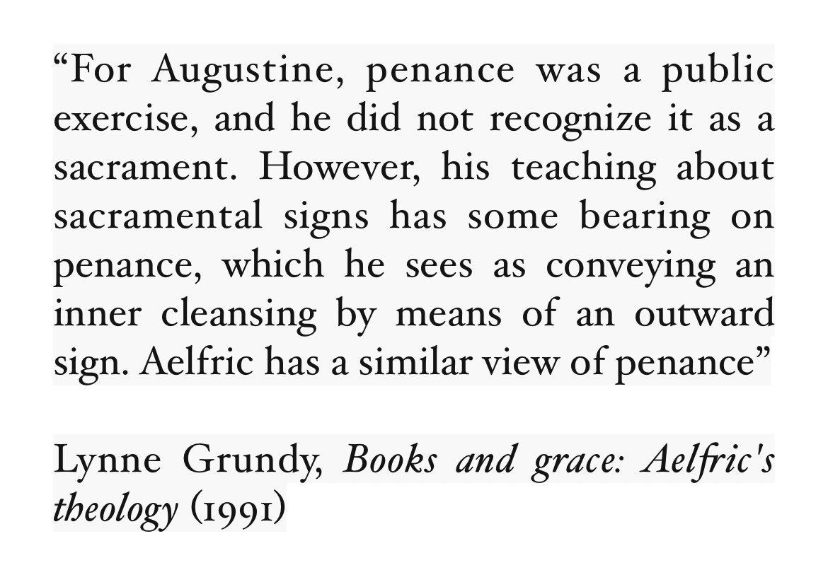 A study of Anglo-Saxon theology, Lynne Grundy, โBooks and grace: Aelfric's theologyโ (1991), finds that Aelfric afforded only to Baptism and Eucharist the title of sacraments.