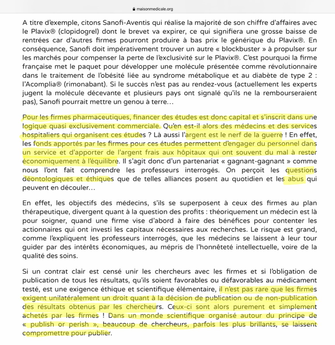 1/n Certains ne voient pas où est le problème quand les études scientifiques qui servent de référence aux décisions sanitaires sont financées par les firmes pharmaceutiques. L’argument principal pour nier le problème : « C’est toujours comme cela. » maisonmedicale.org/Medecins-sous-…