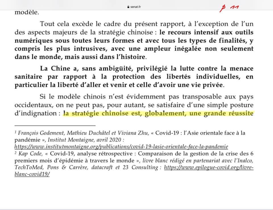 1/n Est-ce complotiste de relire le rapport du Sénat de juin 2021 et d’y remarquer les éloges qu’y font les sénateurs au sujet de la stratégie chinoise, décrite comme « une grande réussite » ? senat.fr/rap/r20-673/r2…