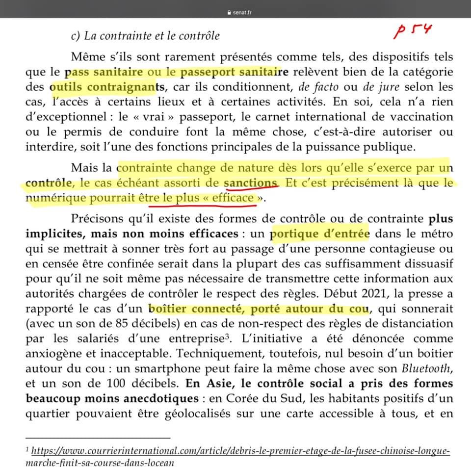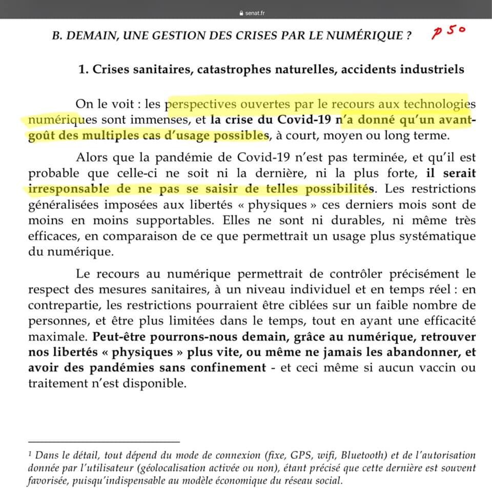 2/n Est-ce complotiste de s’inquiéter des propositions faite par les sénateurs d’utiliser les outils numériques pour contrôler les déplacements, l’état de santé, les fréquentations, les transactions... et pour appliquer des sanctions ?