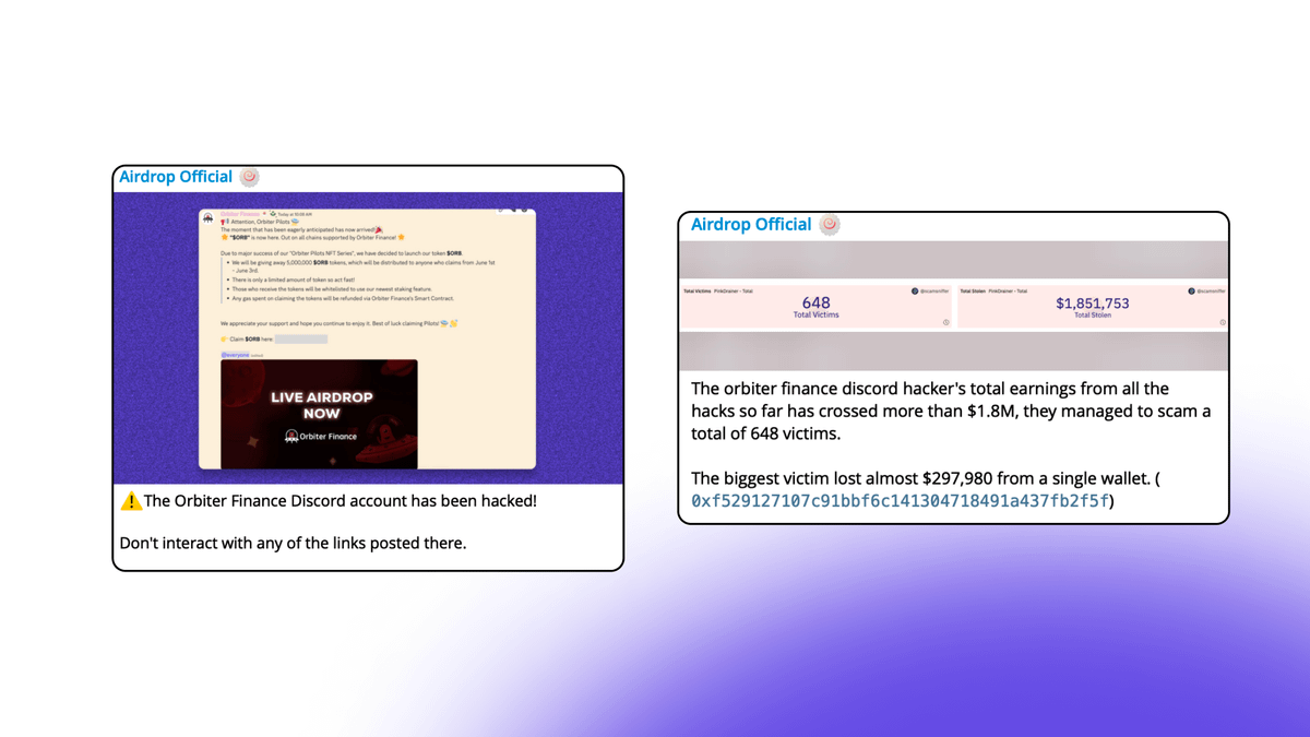 - Learn from the Orbiter hack incident where a hacker infiltrated their Discord server and shared a deceptive "Airdrop claim" link.