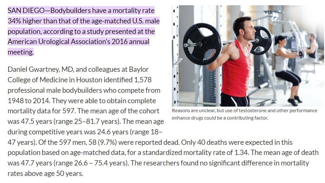 I'm sure the rich, white, high income doctor is probably going to live to be like 85 years old despite being doughy and having bad teeth, guys. The most pleb gymbro thing you can do is think muscle inherently equals longevity. What's the life expectancy for body builders?