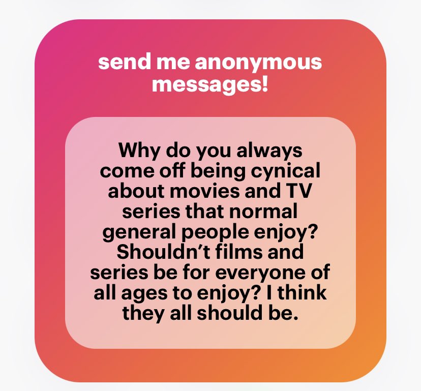 Do I always come off as cynical? Would love to hear from others in this. Most of my published writing and threads are on popular genre film, and if anything I think I’m easier to please than many critics / writers. 39% of my LB ratings are a 4/5 lol.