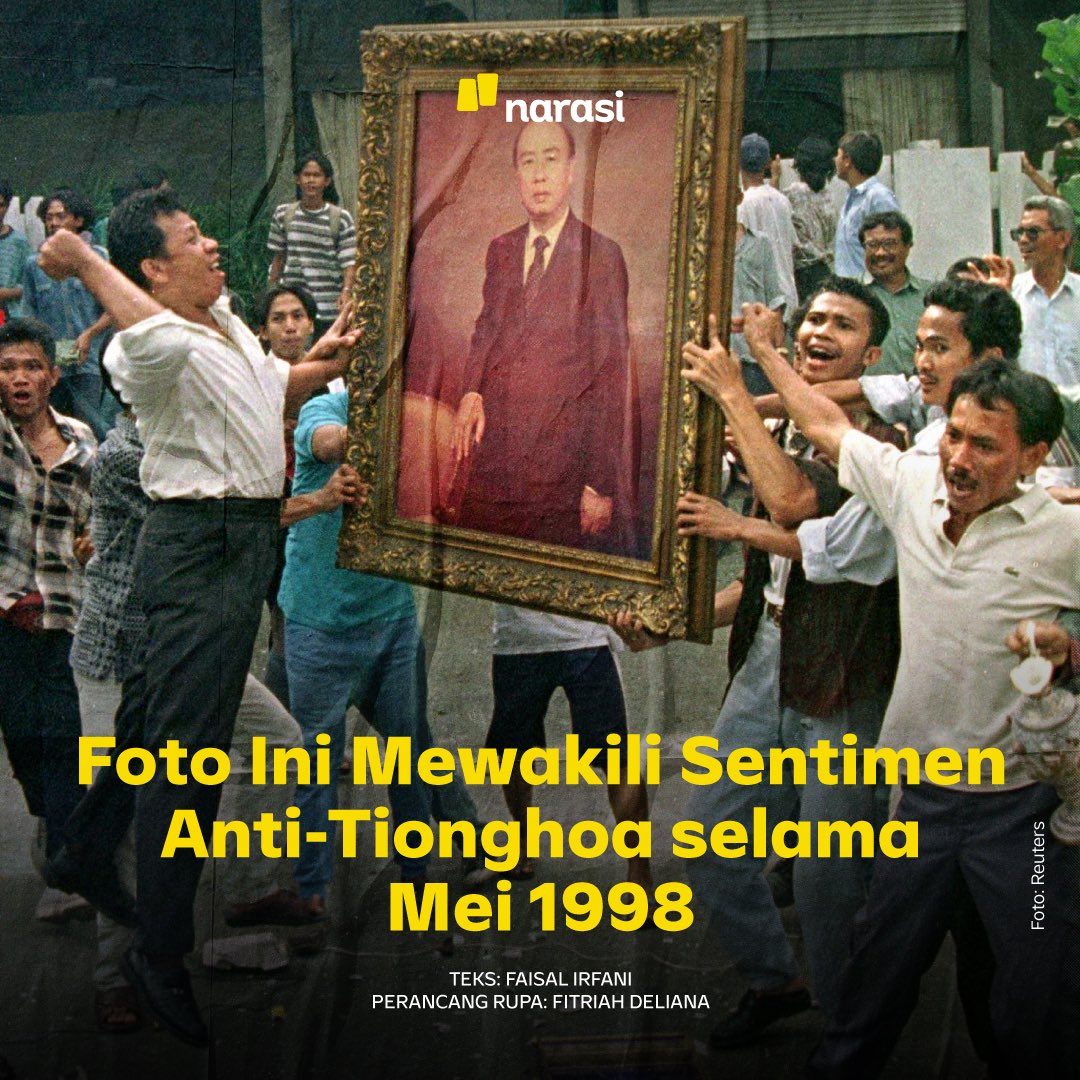 25 tahun Reformasi, potret betapa kacaunya 1998 tergambar dalam foto ini. Dari foto ini, kita diperlihatkan bagaimana sentimen anti-Tionghoa saat itu–yang imbasnya adalah efek domino terhadap mereka: penjarahan dan pemerkosaan.