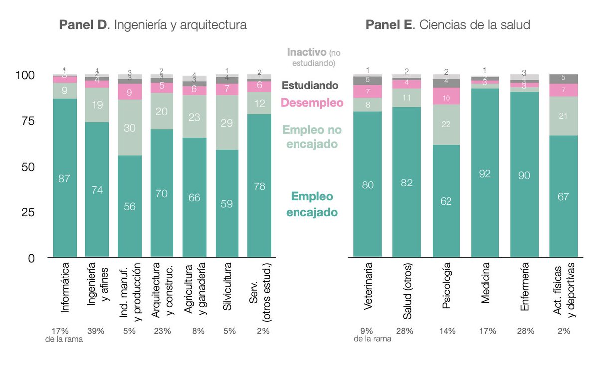 La peor: Artes y Humanidades, con 46% empleo encajado y 13% paro.