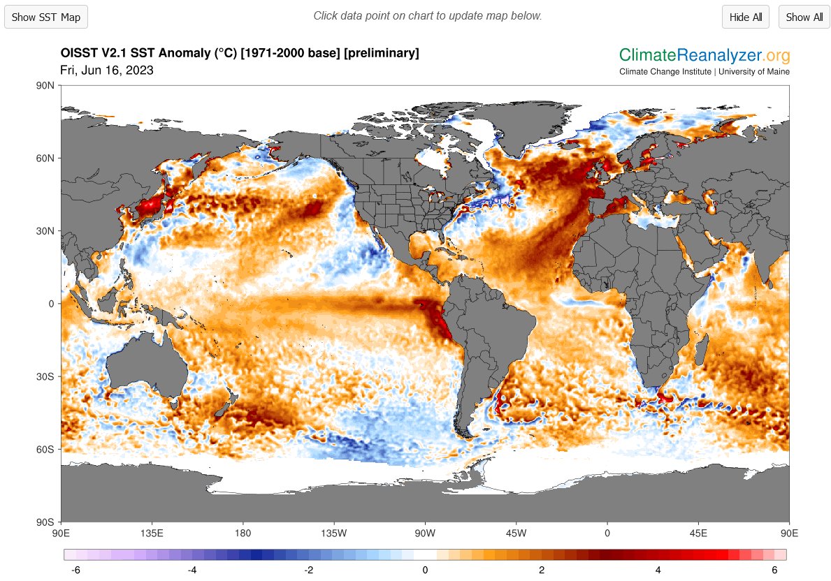 This is a global phenomenon, in terms of rapid heat rise in this short a period of time. It is not simply El Niño (the red arc off the Peruvian coast of South America).