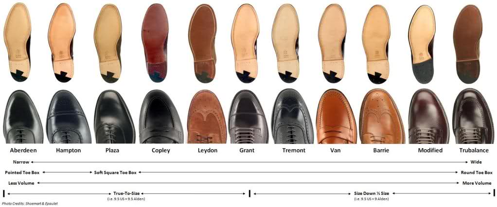 Each shoe company will have its own unique set of lasts. For example, here are Alden's last. Each is named something named Barrie, Plaza, Grant, etc. Some lasts are sleeker than others; some have more room. Which last you choose depends on your foot and stylistic preferences.
