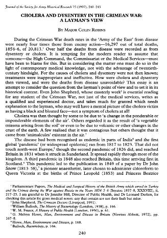 The British 'Army of the East' lost 16,297 of its 20,813 military deaths in the 1854-1856 Crimean War to water borne diseases.
