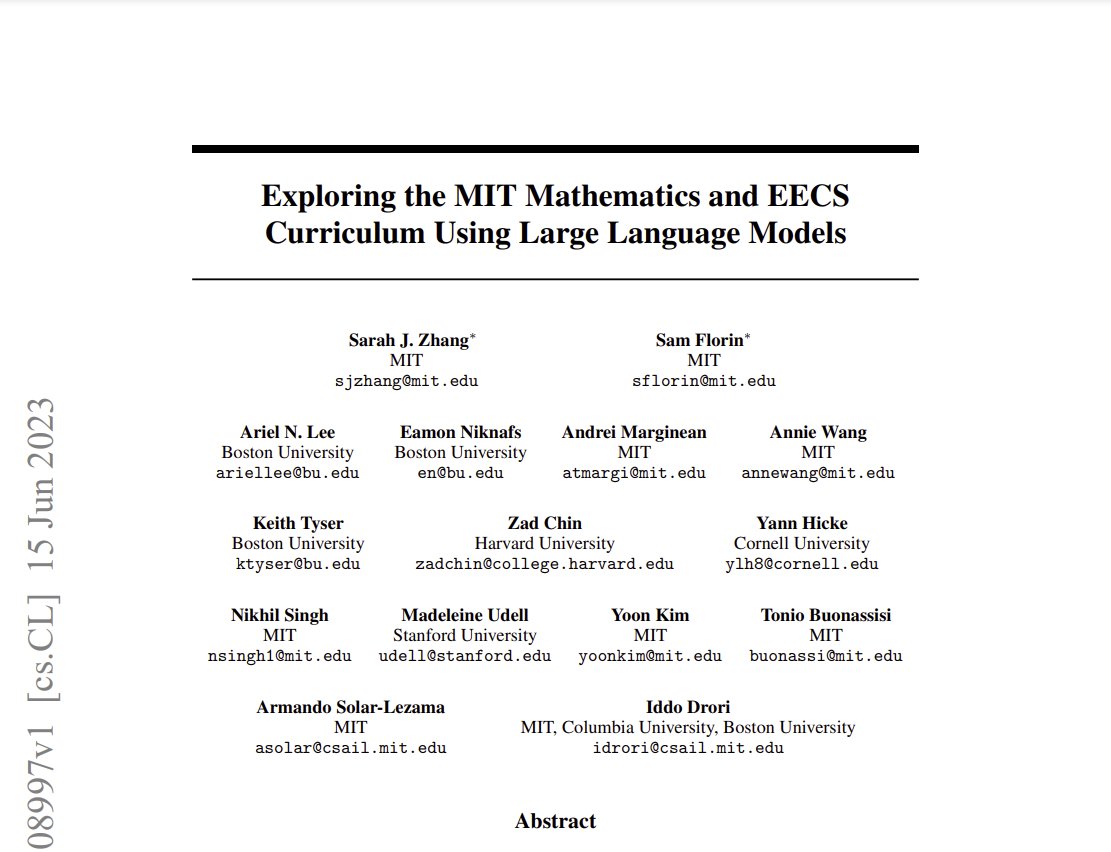 Earlier this week, a 15-member team lead by two MIT undergrads published a working paper, "Exploring the MIT Mathematics and EECS Curriculum Using Large Language Models."