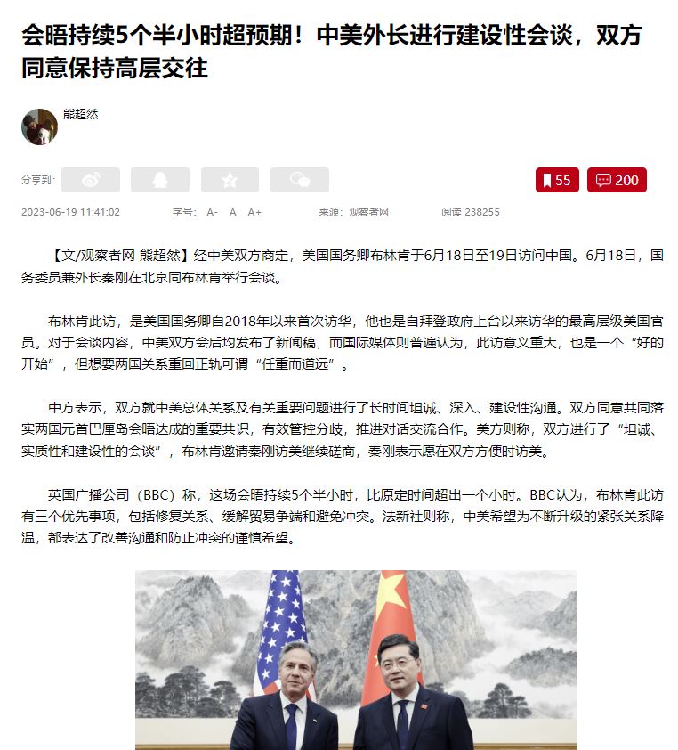 Obie strony zgodziły się na utrzymanie kontaktów na wysokim szczeblu. 🇨🇳Qin wyraził gotowość do złożenia wizyty w USA🇺🇸