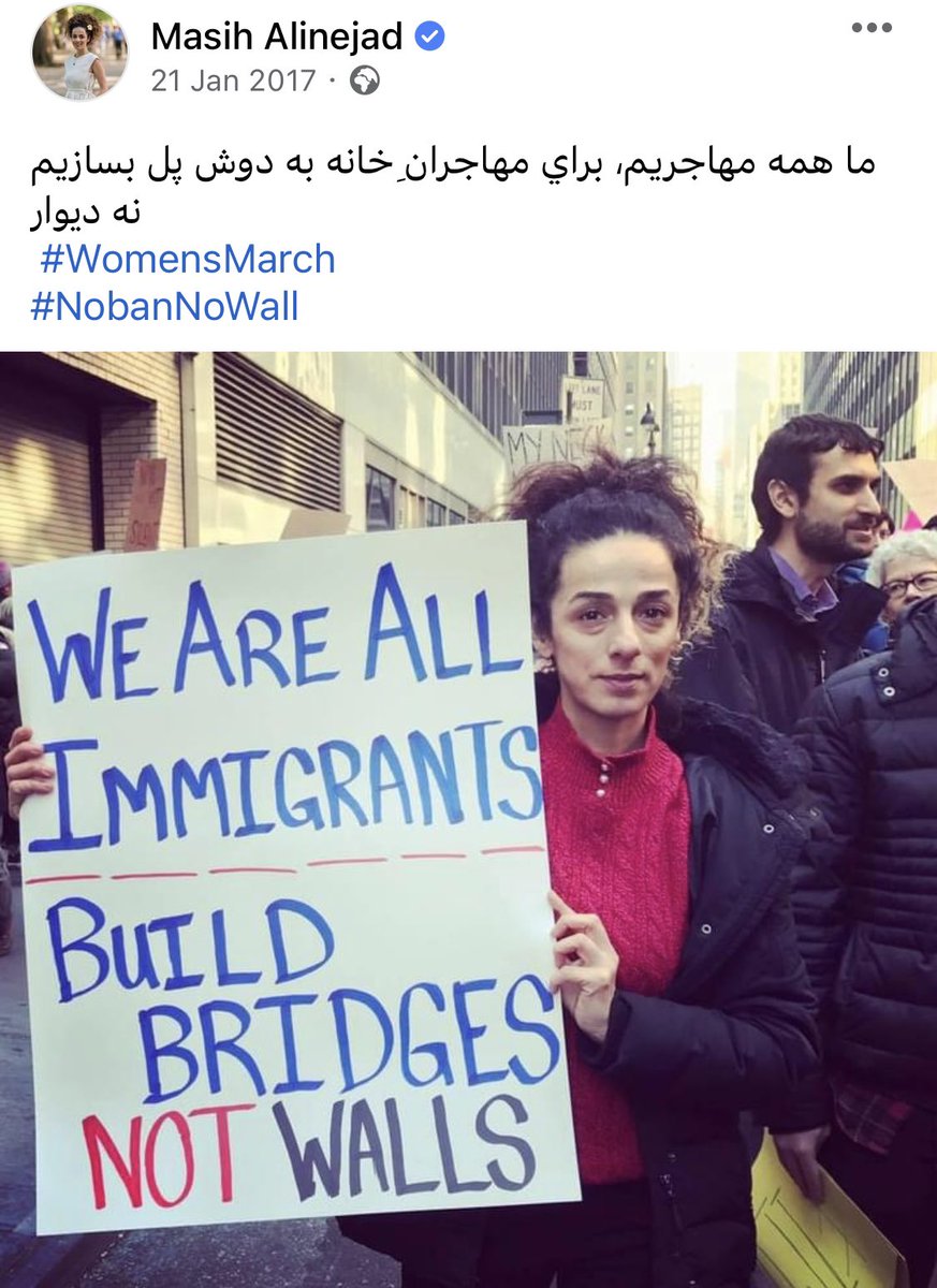 After President Donald Trump introduced his policy to combat illegal immigration with measures like building border walls, Masih Alinejad used her activism to aggressively attack Trump and his common-sense policies. This is another photo reflecting her anti-Trump stance.