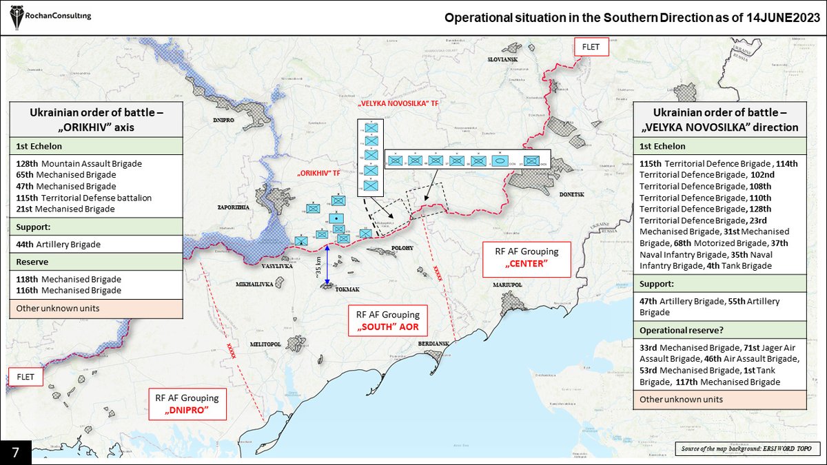 Российские войска в ходе обороны не перебрасывали на Запорожский фронт большое количество новых сил. Проскакивала информация об отправке частей с левого берега Днепра к месту ведения боев. 13/