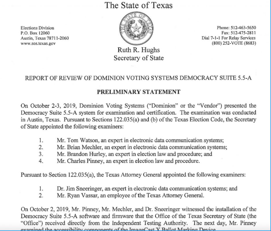 Lie 10: Other Sec. of States gave warnings about Dominion machines. At this point. Halderman had already made an initial report on vulnerabilities. During testimony the Texas report was also out.
