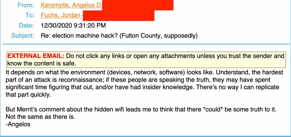 Also interesting. Did anyone else know Angelos Keromytits of Alfa Bank Fame (while at DARPA) was tasked by Jordan Fuchs/David Becker (ERIC) to be on GA elections task force after he moved to GTech despite no elections experience. Other GT experts objected to voting machines