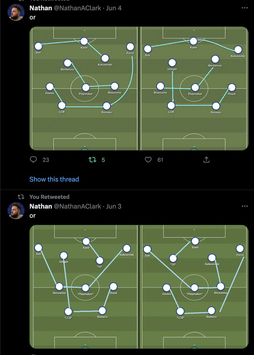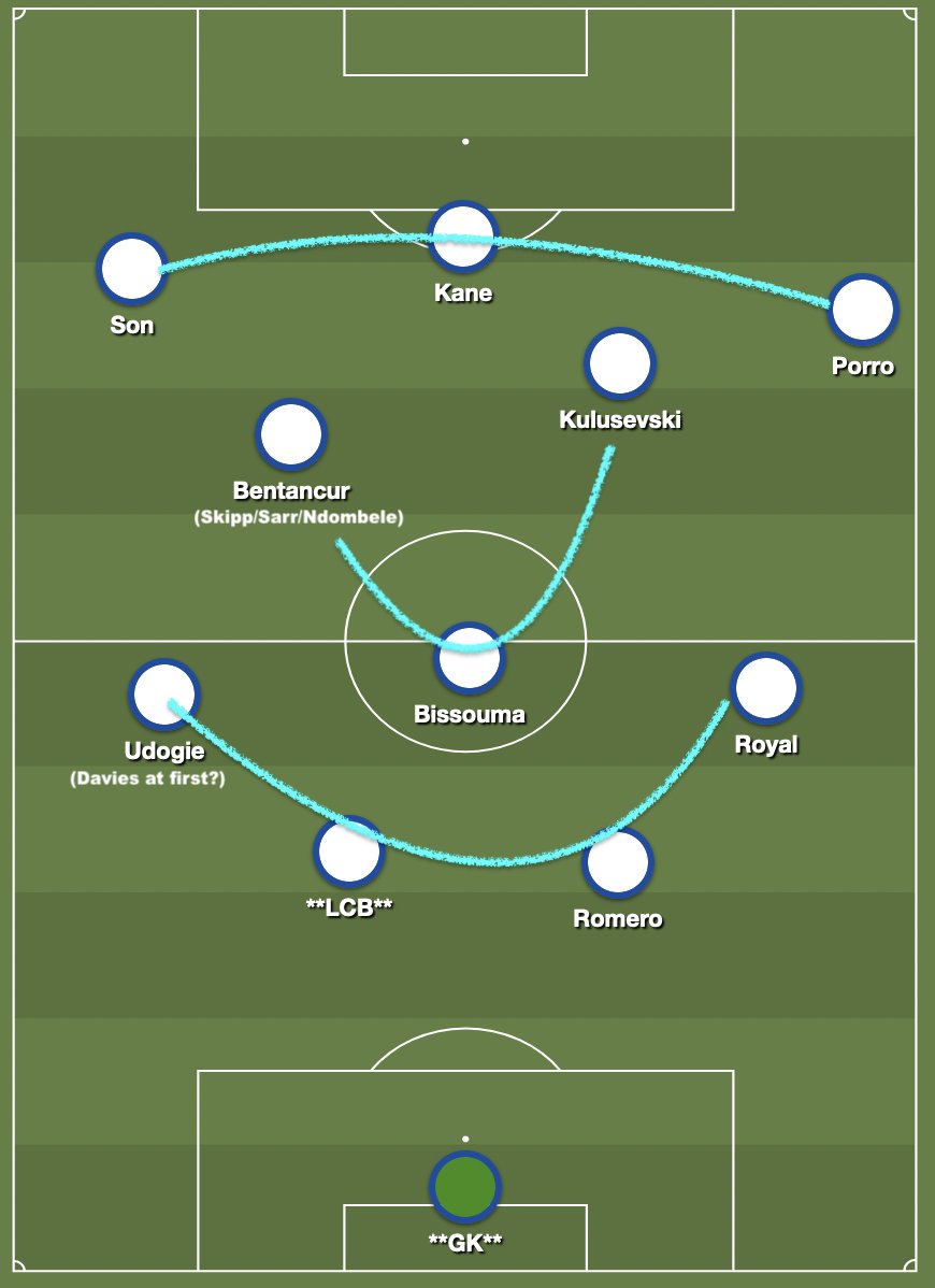So, a couple of ideas above but there remain a lot of questions over the composition of midfield and forward lines. Is Kulusevski better as an 8 or out wide? Can Ndombele offer us something (I suspect not for fitness reasons but we should try)?